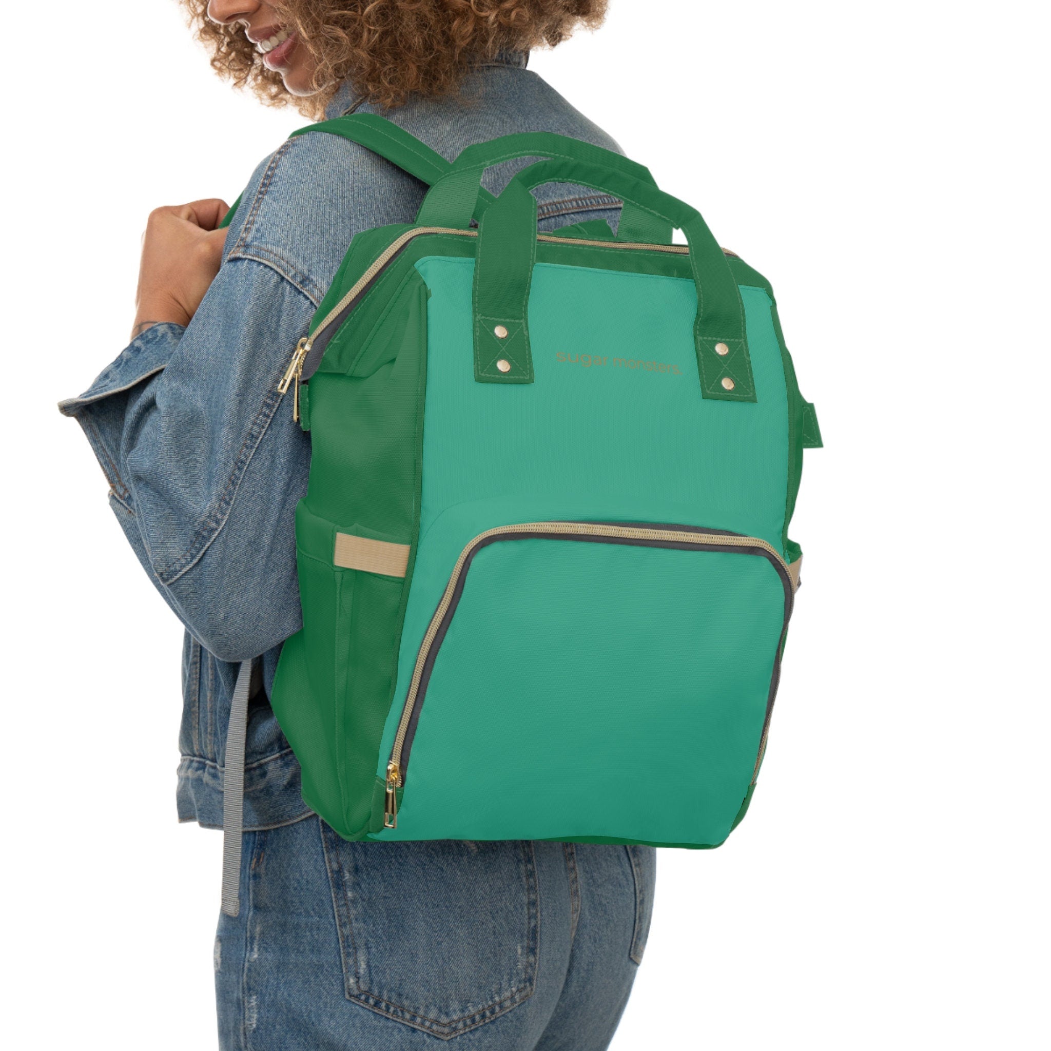 Colorblock Nylon Backpack: Green & Aqua Minimalist Bag - FREE Personalization