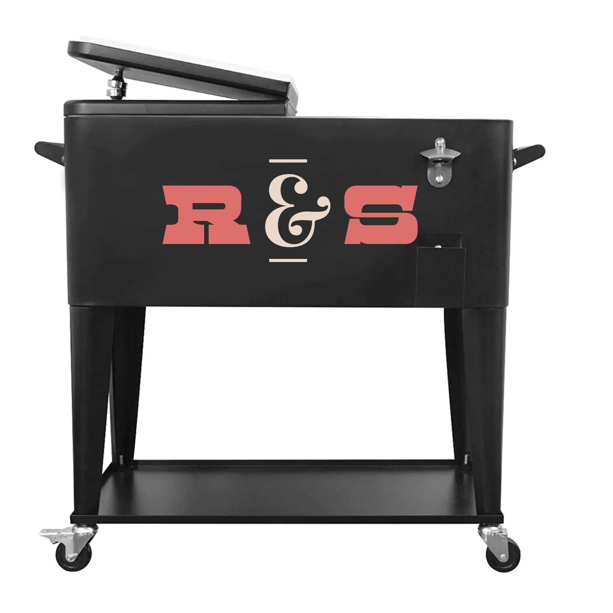 Custom Retro Personalized Black Insulated Rolling Cooler Cart - Stylish Portable Freezer for Tailgates & Parties