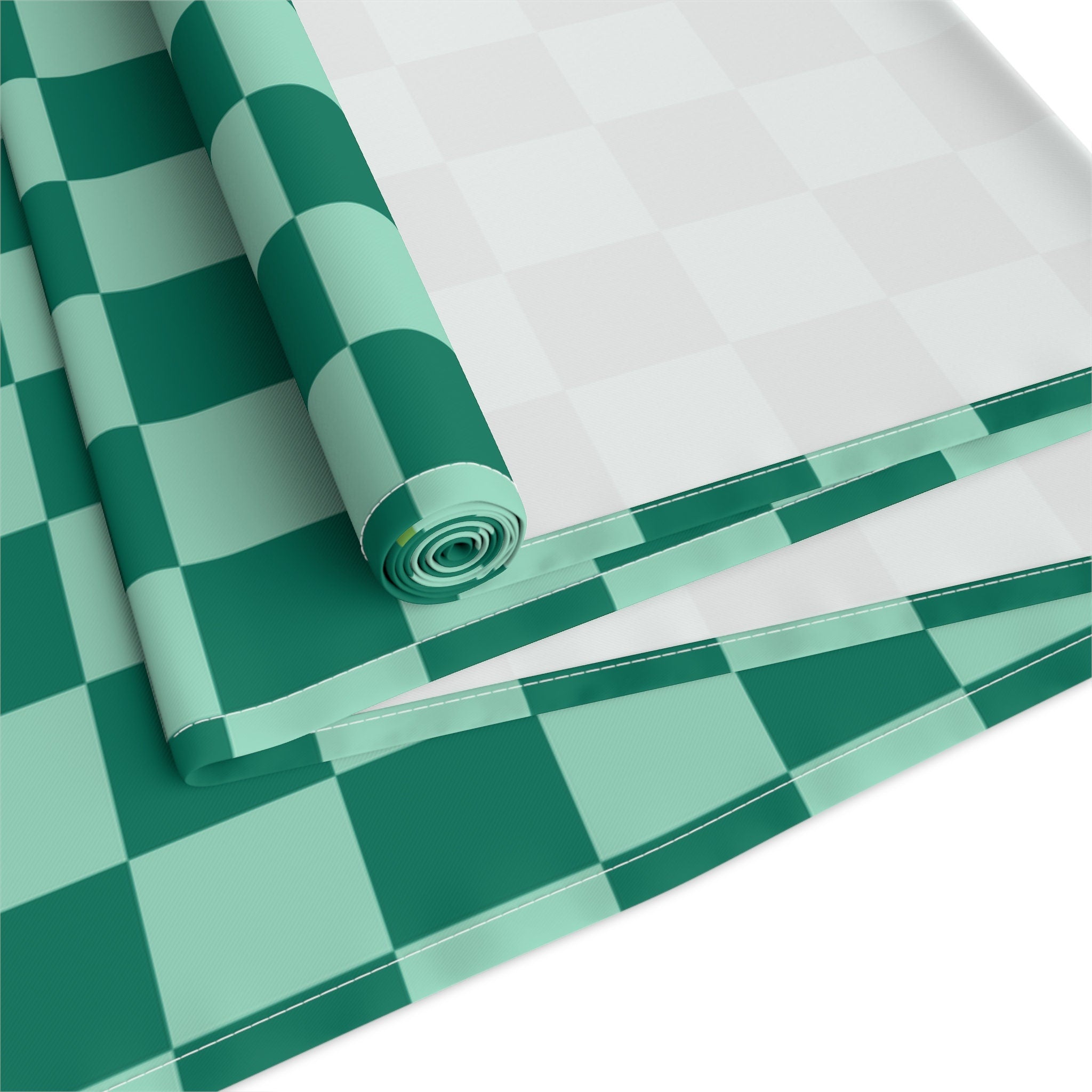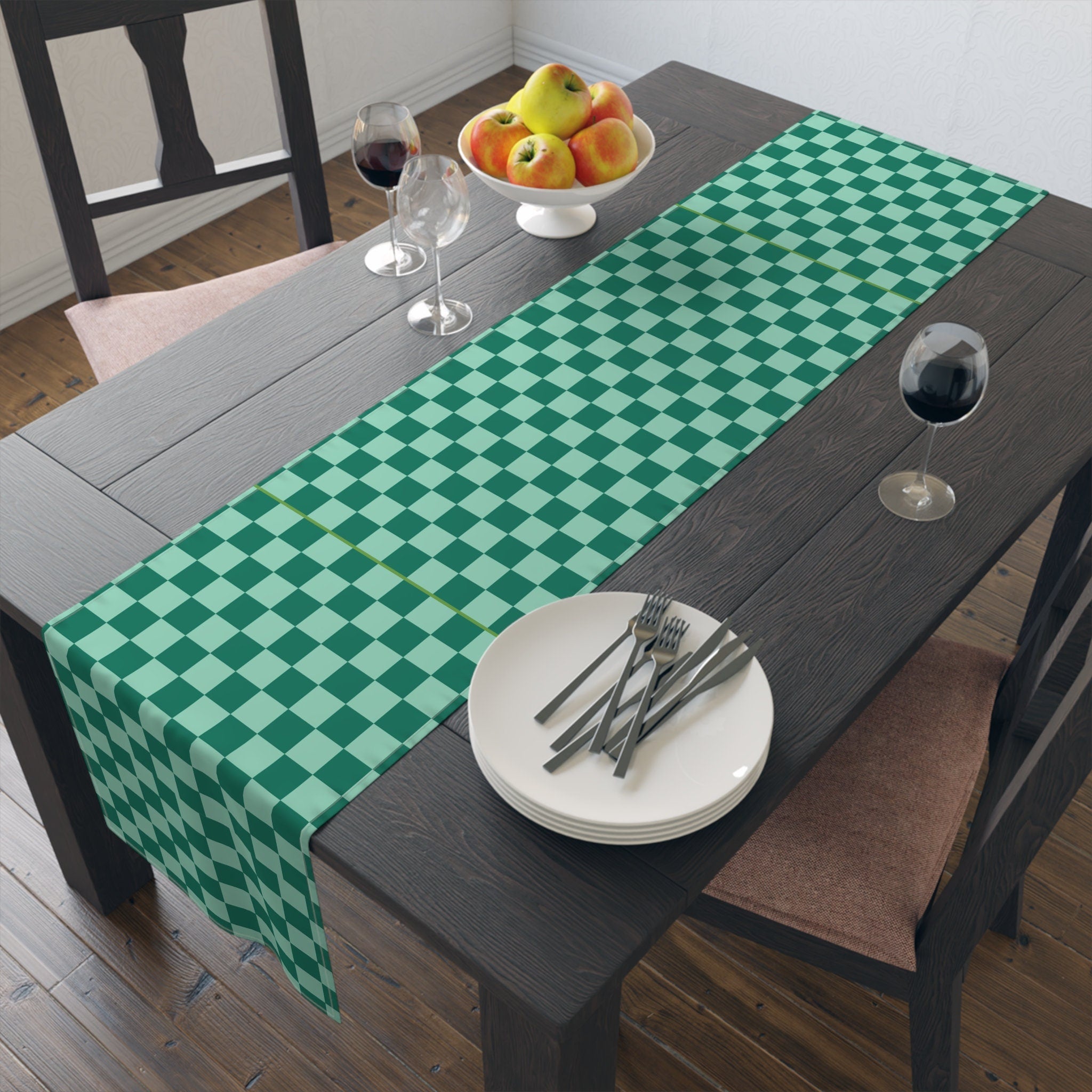 Green Checkered Table Runner for Birthday, Christmas, Retro Modern Style Decor