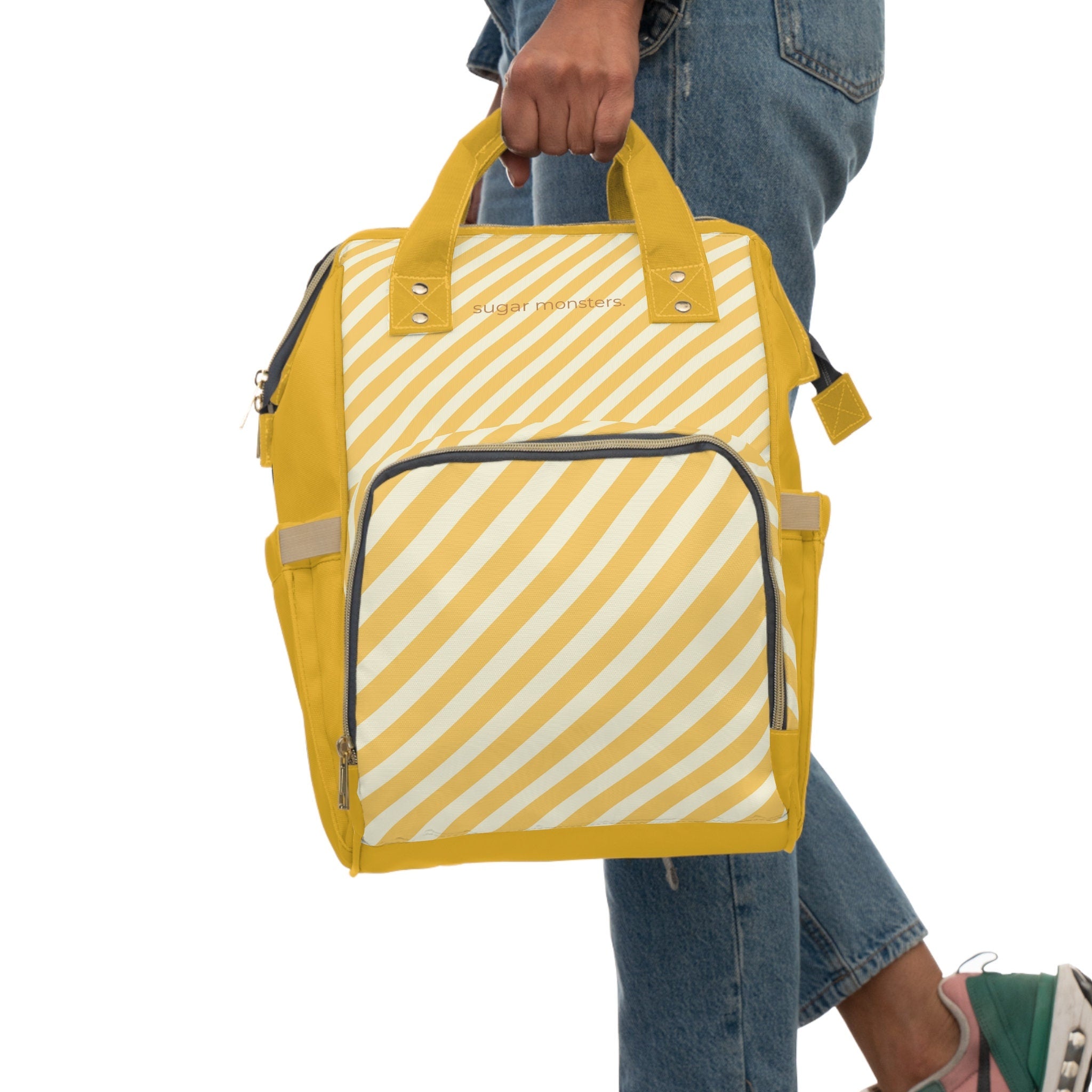 This backpack is proof that minimal can still make a statement. Designed with a striking angled yellow stripe against a crisp background, it’s the perfect blend of modern edge and everyday function. Whether you’re commuting, campus-hopping, or café-working, this bag shows up strong and stylish.