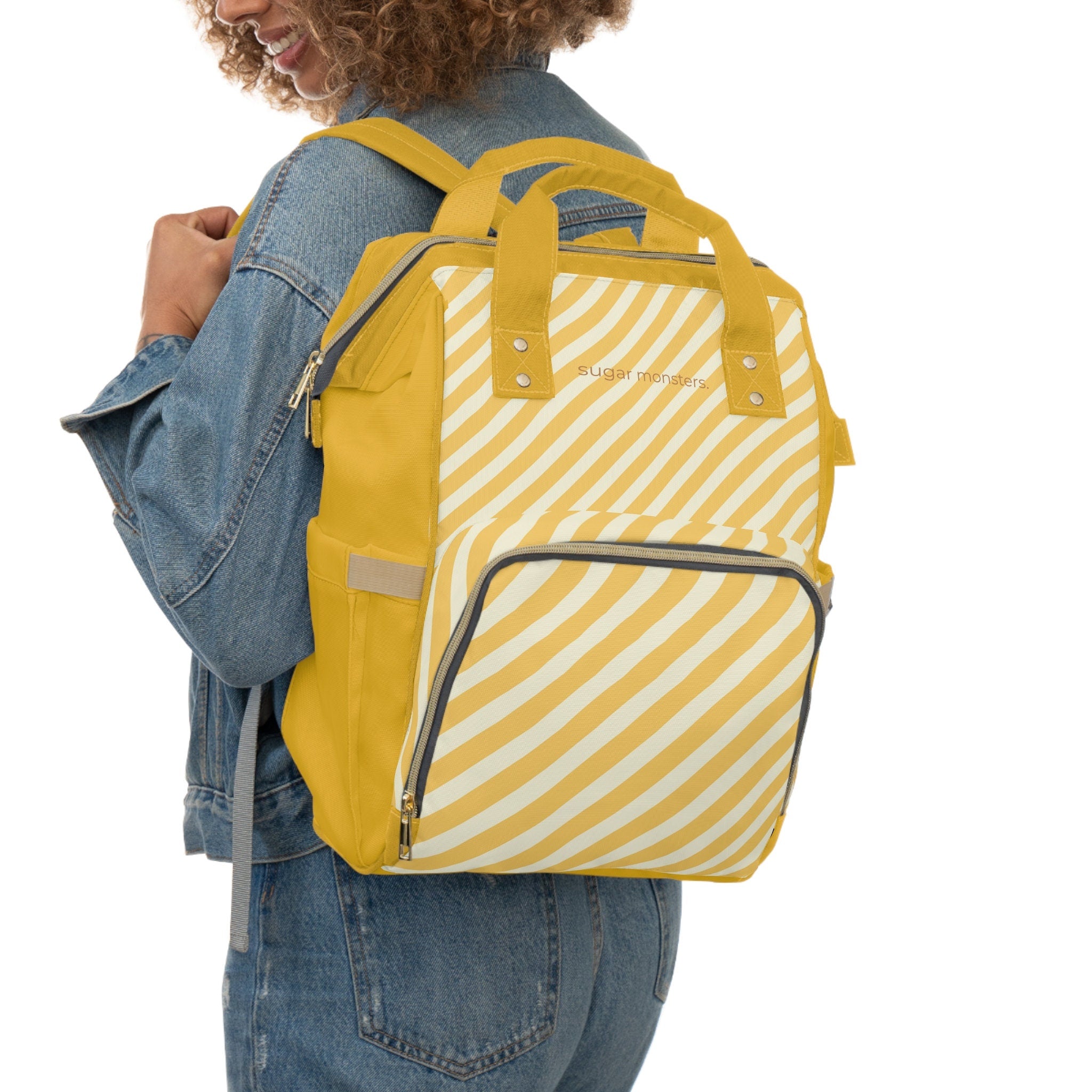 Modern Yellow Stripe Nylon Backpack: Minimalist School, Work & Travel Bag